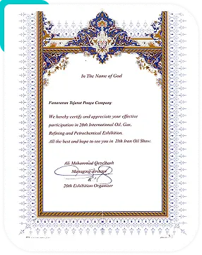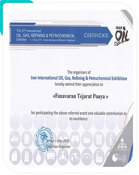 تقدیرنامهها تقدیر نامه شرکت انتقال گاز ایران تقدیر نامه شرکت انتقال گاز ایران از خدمات ارزشمند شرکت فناوران تجارت پویا و همکاری در پروژه های مختلف تقدیر نامه شرکت پالایش گاز فجر جم تقدیر نامه شرکت پالایش گاز فجر جم به پس عملکرد مثبت شرکت فناوران تجارت پویا در تامین و تحویل قطعات و قدردانی از عملکرد شرکت گواهینامه حضور در بیستمین نمایشگاه بین المللی نفت، گاز، پالایش و پتروشیمی تهران - 16 -19 اردیبهشت 1394 گواهینامه حضور در بیستمین نمایشگاه بین المللی نفت، گاز، پالایش و پتروشیمی تهران – 16 -19 اردیبهشت 1394 گواهینامه حضور در سومین نمایشگاه بین المللی تجهیزات صنعت نفت خوزستان، اهواز - 28 -30 آذرماه 1394 گواهینامه حضور در سومین نمایشگاه بین المللی تجهیزات صنعت نفت خوزستان، اهواز – 28 -30 آذرماه 1394 گواهینامه حضور در بیست و یکمین نمایشگاه بین المللی نفت، گاز، پالایش و پتروشیمی تهران - 16 -19 اردیبهشت 1395 گواهینامه حضور در بیست و یکمین نمایشگاه بین المللی نفت، گاز، پالایش و پتروشیمی تهران – 16 -19 اردیبهشت 1395 21th Oil, Gas, Refinery and Petrochemical International Exhibition in Tehran from May 06th to May 9th 2016 21th Oil, Gas, Refinery and Petrochemical International Exhibition in Tehran from May 06th to May 9th 2016 21th Oil, Gas, Refinery and Petrochemical International Exhibition in Tehran from May 06th to May 9th 2016 21th Oil, Gas, Refinery and Petrochemical International Exhibition in Tehran from May 06th to May 9th 2016